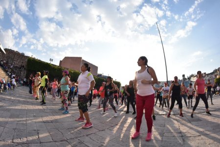Guanajuato, Gto.; 4 de abril de 2019.– Más de 500 personas participaron en la activación masiva que el Gobierno Municipal de Guanajuato organizó en la explanada de la Alhóndiga de Granaditas.